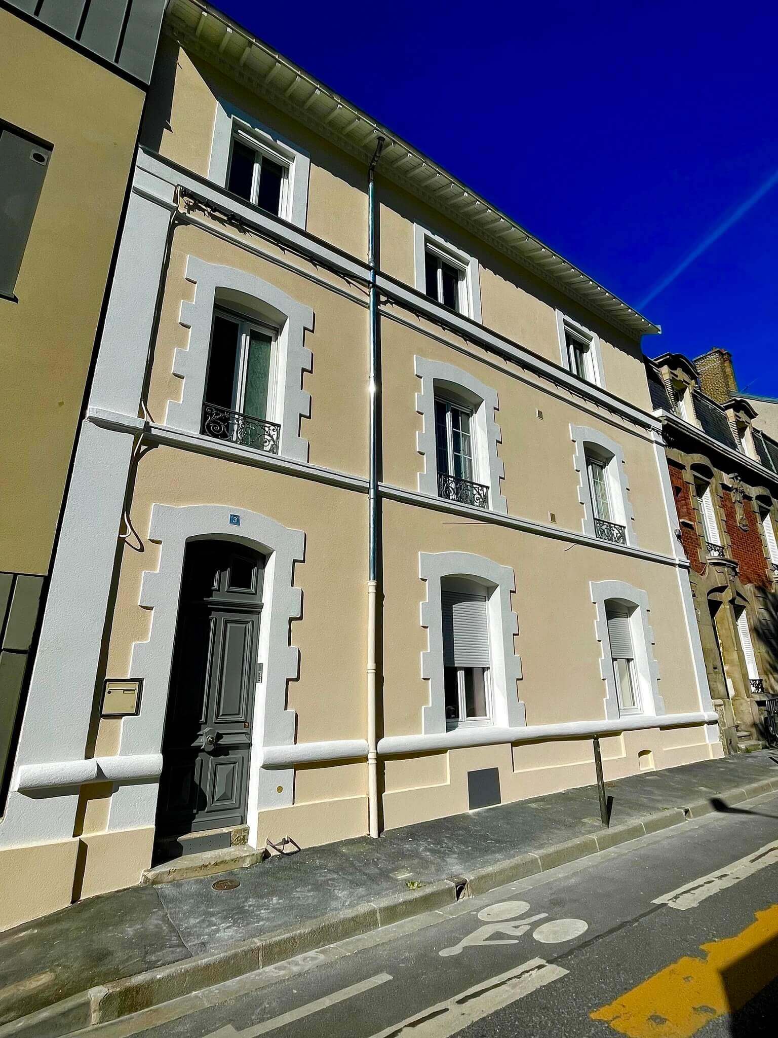À Reims, notre équipe SM Ravalement est intervenue pour redonner tout son éclat à cette façade grâce à un ravalement complet et durable.